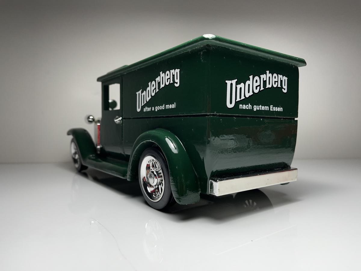 MADEIRA AAA000007 BARMEISTER UNDERBERG Underberg Herbal Model A bebida Underberg era entregue pelo "Underbeg Herbal Model" já na década de 1930. De longe o motorista anunciava sua chegada com uma buzina cuja melodia era tão cativante, que as pessoas assobiavam juntos. A partir dai começaram a encomendarem seu Underberg com a melodia Underberg. Miniatura inspirada em um Opel 1.31 Bussines Car, construído em 1937 com 24 cv/1278 cc de cilindrada e velocidade máxima de 80 Km/h. MADEIRA Modelo Alemão. 1937 Verde Escala mais proxima 1/18 (30 Cm).