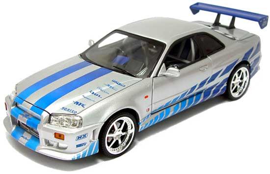 ERTL 33447 Nissan SkylineFast and Furious 2 Movie 2001Prata faixas Azuis 1/18