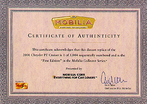 MAISTO 31895 - MOBILIA Chrysler PT Cruiser Edição Limitada 1/5004 - Chassi em metal n.º 3245 PT Cruiser com certificado Certificado de Autenticidade - Base exclusiva com Display com Luzes - Série Collector 2000 Azul Metálico 1/18