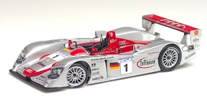 MAISTO 38659 - 01 Audi R8 Le Mans - Infineon Pilotos: F.Biela/E.Pirro/T.Kristenser GT Racing 2002 Prata e Vermelho 1/18
