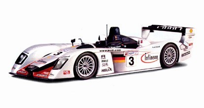 MAISTO 38659 - 03 Audi R8 Le Mans - Infineon Pilotos: M.Krumm/P.Peter/M.Werner GT Racing 2002 Prata e Preto 1/18