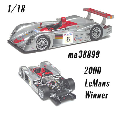 MAISTO 38899 - 08 Audi R8 Le Mans - Sieger Pilotos: F.Biela/E.Pirro/T.Kristenser GT Racing 2000 Prata e Vermelho 1/18